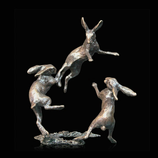 Butler & Peach Miniatures - Bronze Hares Dancing Centrepiece