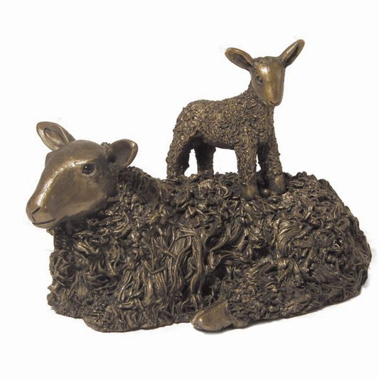Ewe with Lamb on Back Bronze Figurine by Veronica Ballan (Frith Sculpture)