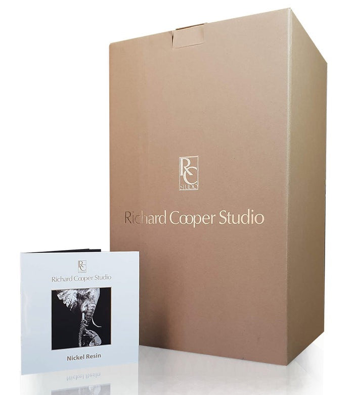 Keith Sherwin's evocative sculpture portrays a fox in repose, nestled amongst woodland ferns—a contemplative study of Britain's celebrated fauna. This distinguished nickel resin piece belongs to an exclusive wildlife collection, showcasing refined artisanal technique through its lustrous nickel finish and carefully developed antique patina that accentuates every sculptural detail. Presented in an elegant box with accompanying catalogue documentation, this work represents a sophisticated acquisition for the discerning collector of natural history sculpture.