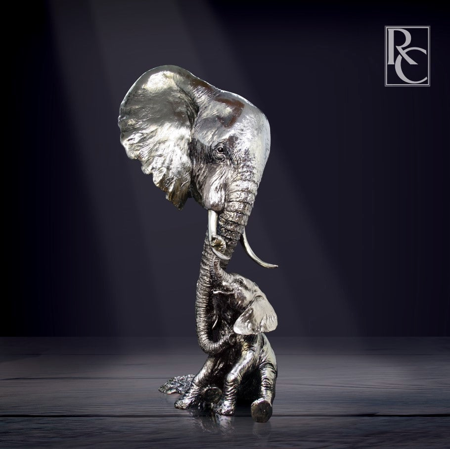 Elephant & Calf Nickel Sculpture by Keith Sherwin for Richard Cooper Studio