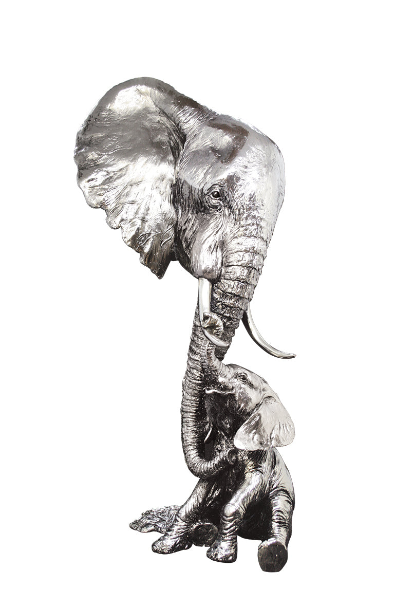 This design by Keith Sherwin, is one of 8 in the” Nature’s Bond” series, all of which depict the relationship between mother and young. The unusual and imaginative design allows the perfect balancing of the mother elephant interacting with her calf. The whole sculpture is generously coated in nickel and then given an antique finish to bring the detail to the fore. A catalogue giving details of other titles is enclosed in the presentation box.
