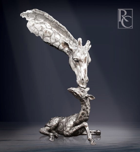 Giraffe & Calf Nickel Sculpture by Keith Sherwin for Richard Cooper Studio