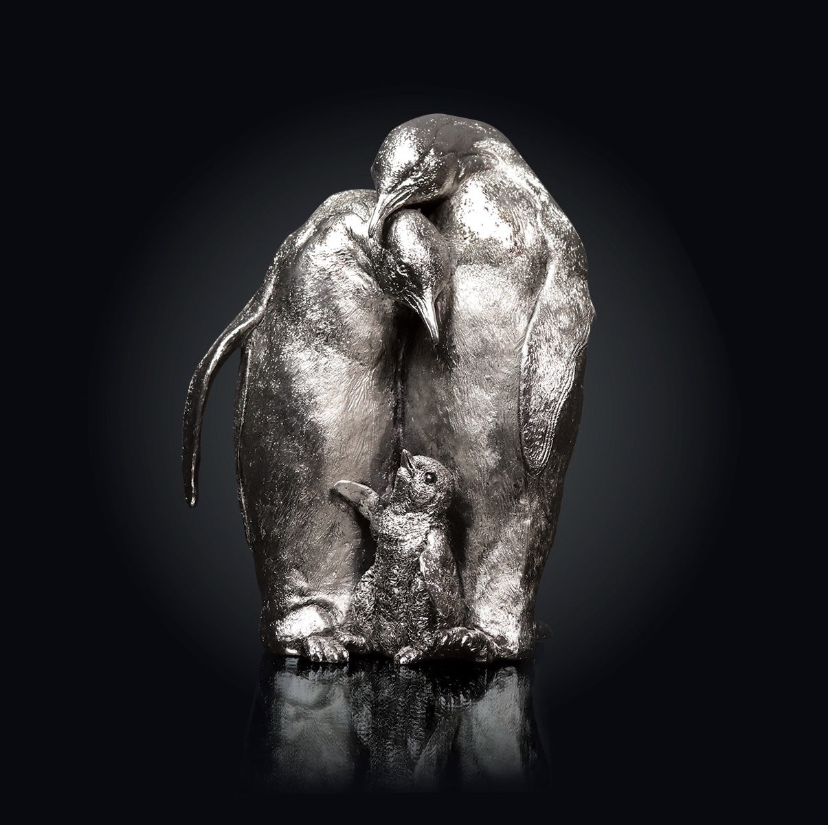 Penguin Family Nickel Sculpture by Keith Sherwin from Richard Cooper Studio.